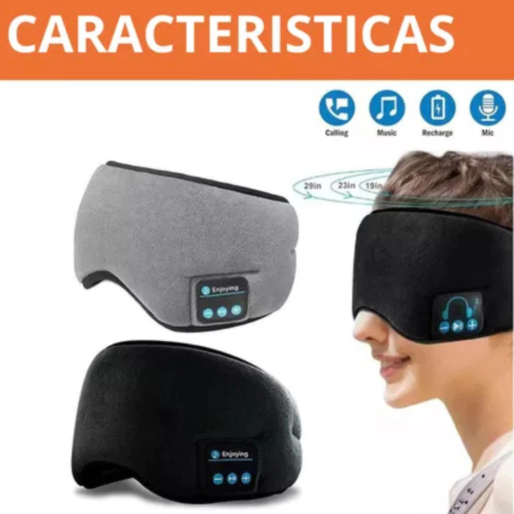 Antifaz Bluetooth Protector Para Dormir Cubre Tapa Ojos Suave Ergonomico Con Microfono Apto para atender Llamadas y Escuchar Musica con Sonido Relajante.