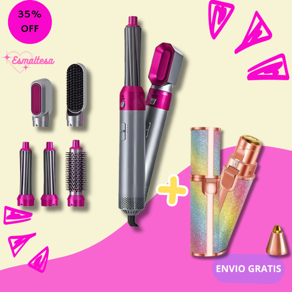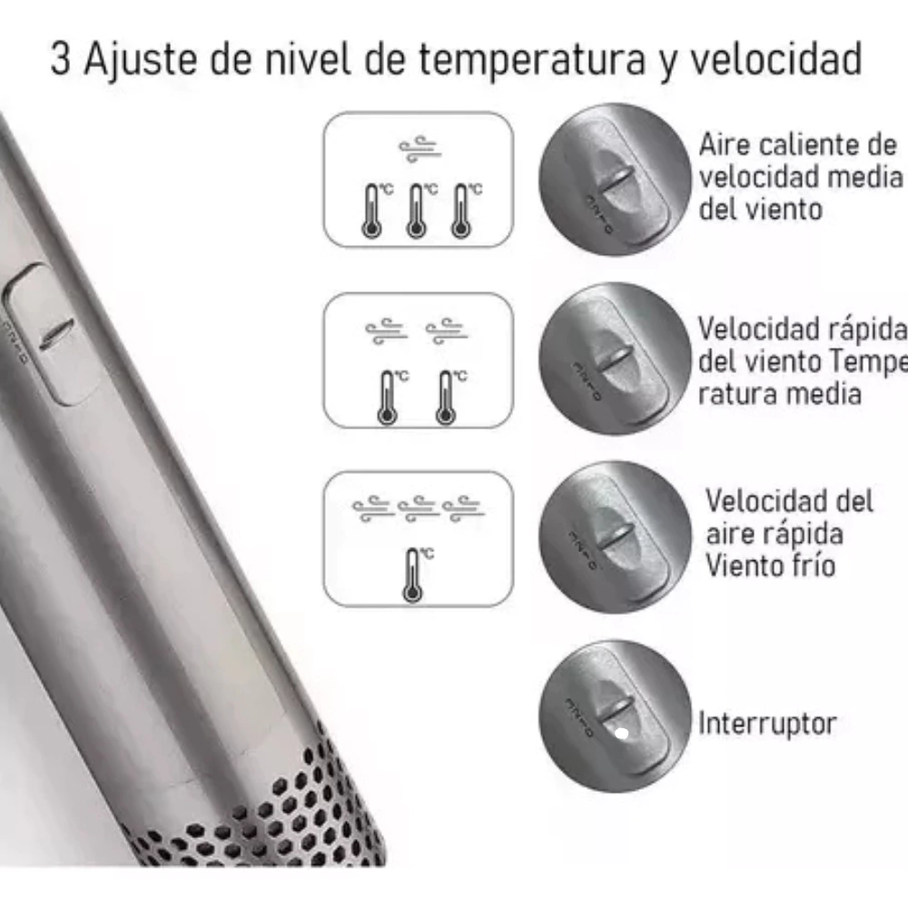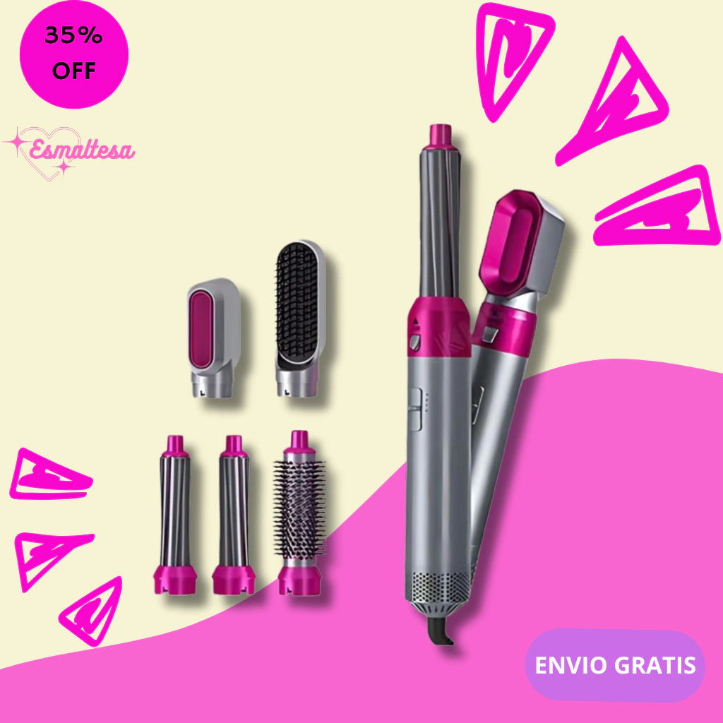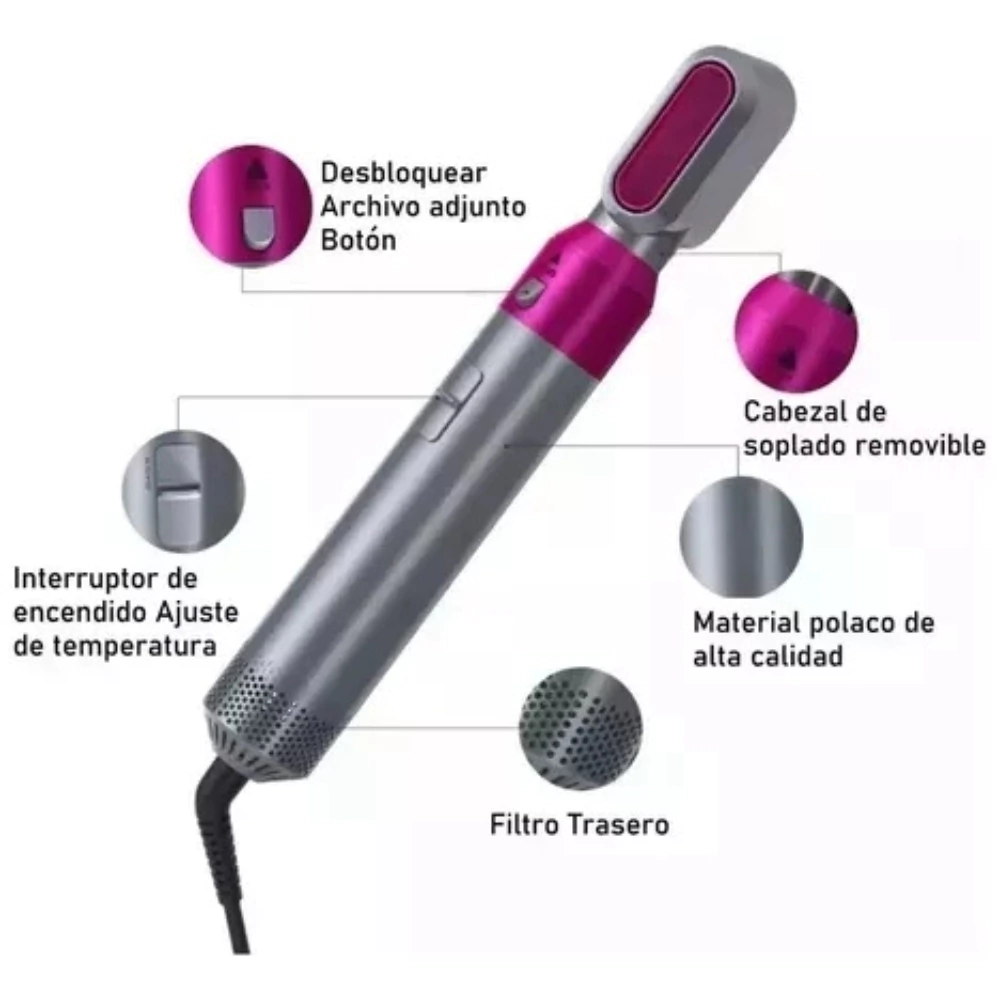👉5 cabezales: secador, cepillo alisador, cepillo modelador, buclera, concentrador.