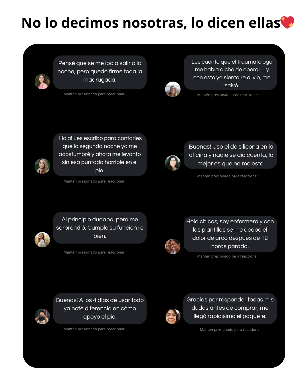 Diseñanas para reducir el impacto al caminar y corregir la postura, brindan soporte en el arco, alivian el dolor de juanetes, talones y rodillas. Ligeras, comodas y discretas, se aceptan a cualquier calzado para que sientas la diferencias desde el primer uso.